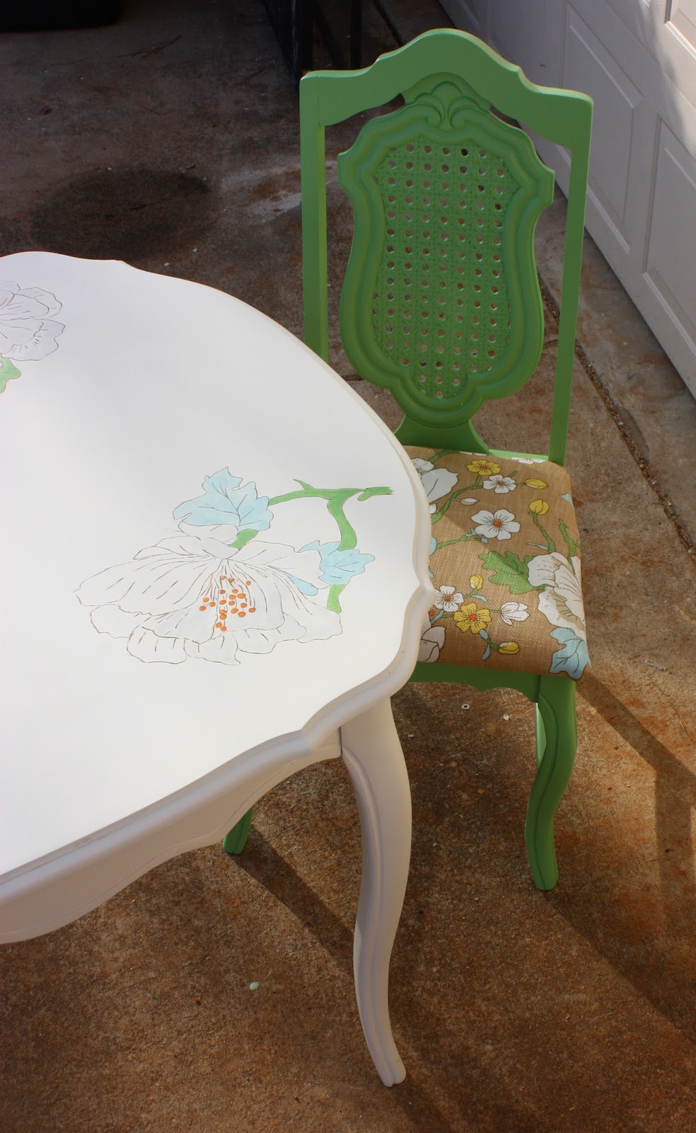 ReplyDeleteAs for how I painted the flowers, I just laid out the fabric for the chairs and then pencil sketched it onto the table top. Then I went back over it with the various colors and finally, outlined it with brown paint.